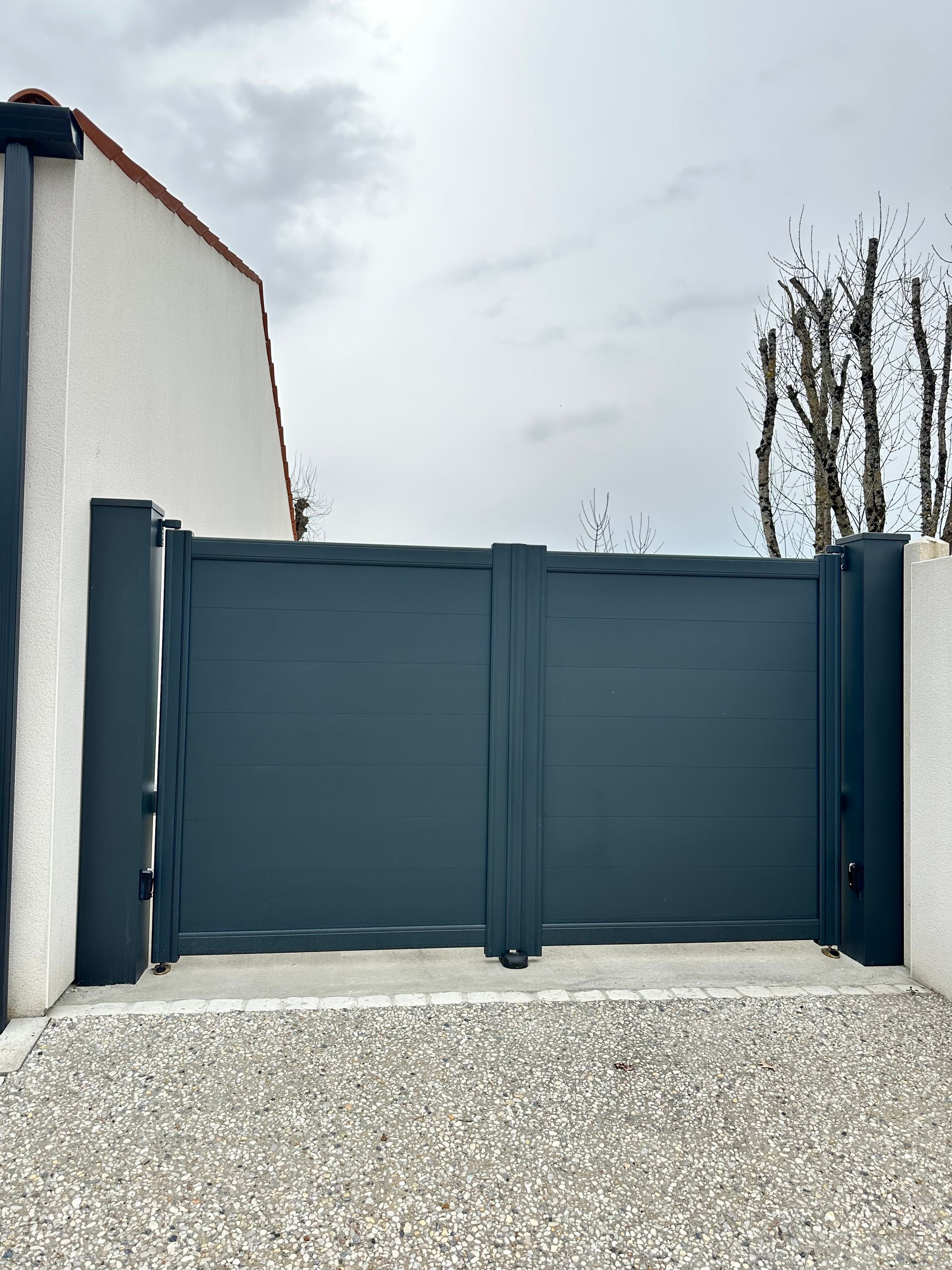 Exemple : AVANT / APRES PORTAIL 2 VANTAUX COULISSANT AVEC CLOTURE EN ALUMINIUM